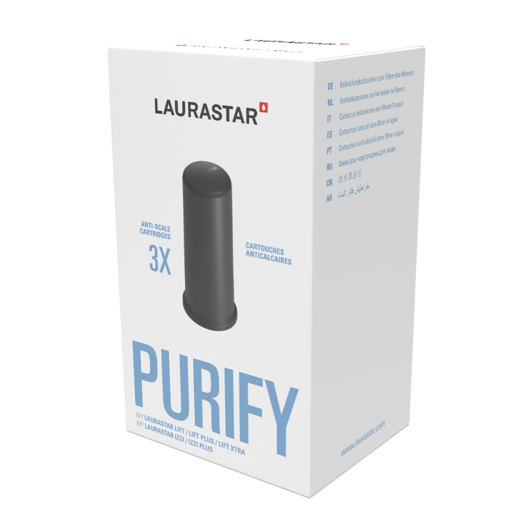 Laurastar's anti-scale cartridge filters the tap water in your Lift and IZZI Plus models.
