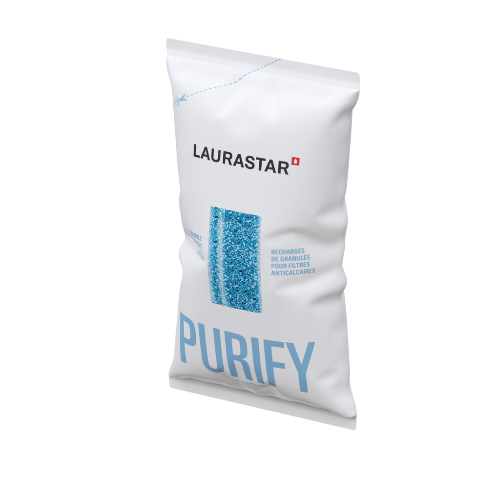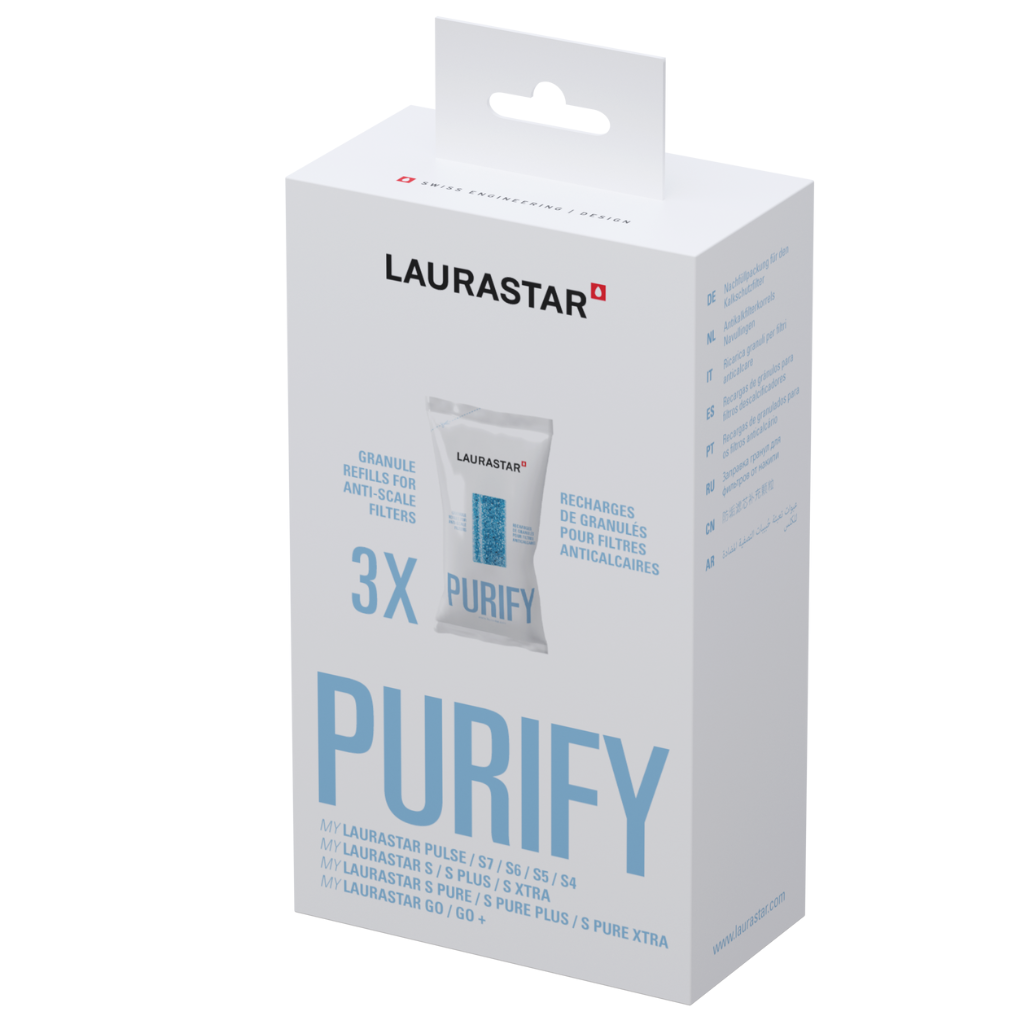 This anti-scale granules refill, specially designed by Laurastar Swiss engineers, allows you to filter tap water before it is used for ironing.