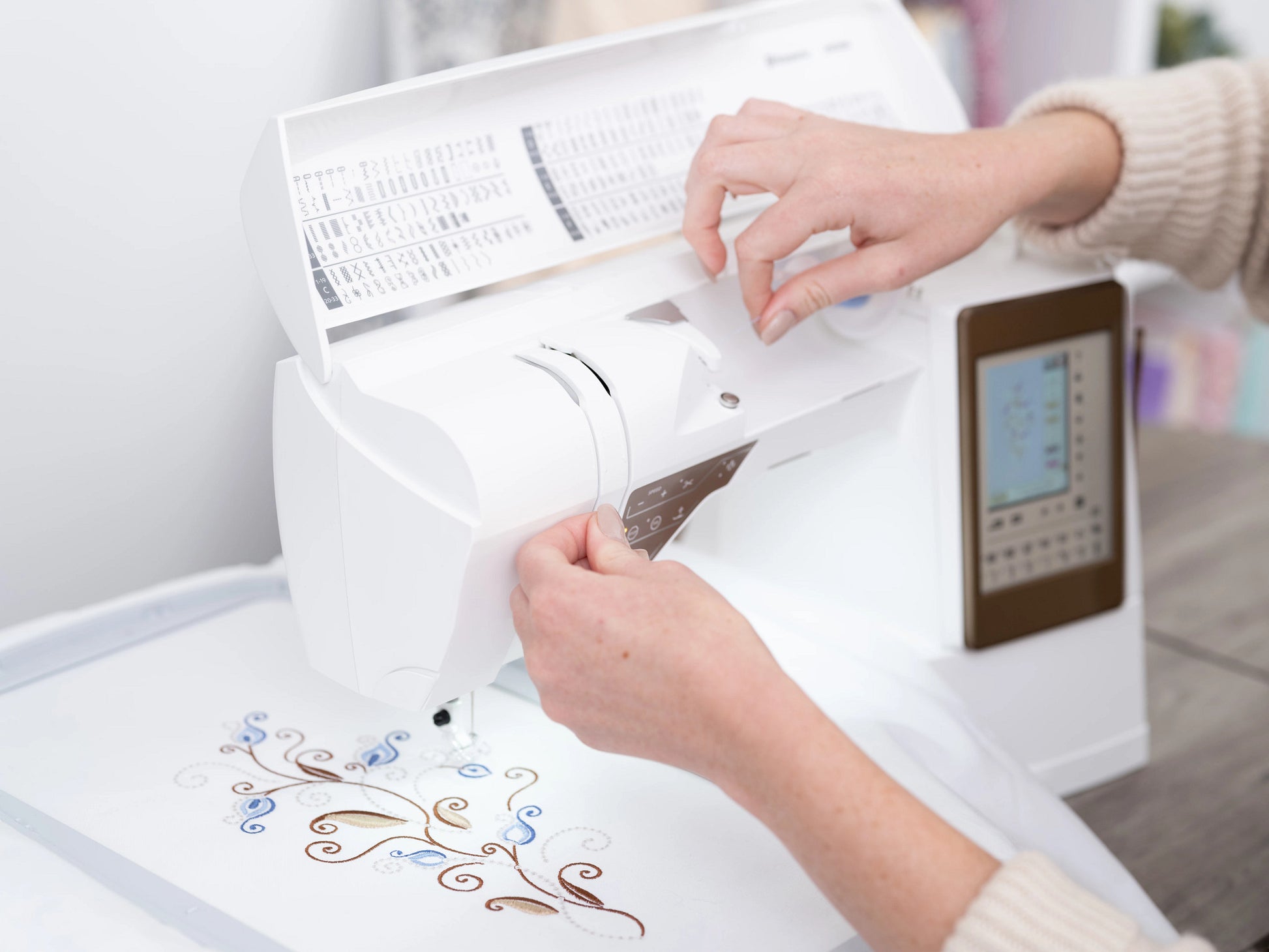 Designed with fantastic space and exclusive built-in assistance features, the DESIGNER TOPAZ™ 50 is your ultimate creative companion. This sewing and embroidery machine transforms ordinary fabric into extraordinary projects with its intuitive technology, generous workspace, and inspiring design capabilities.
