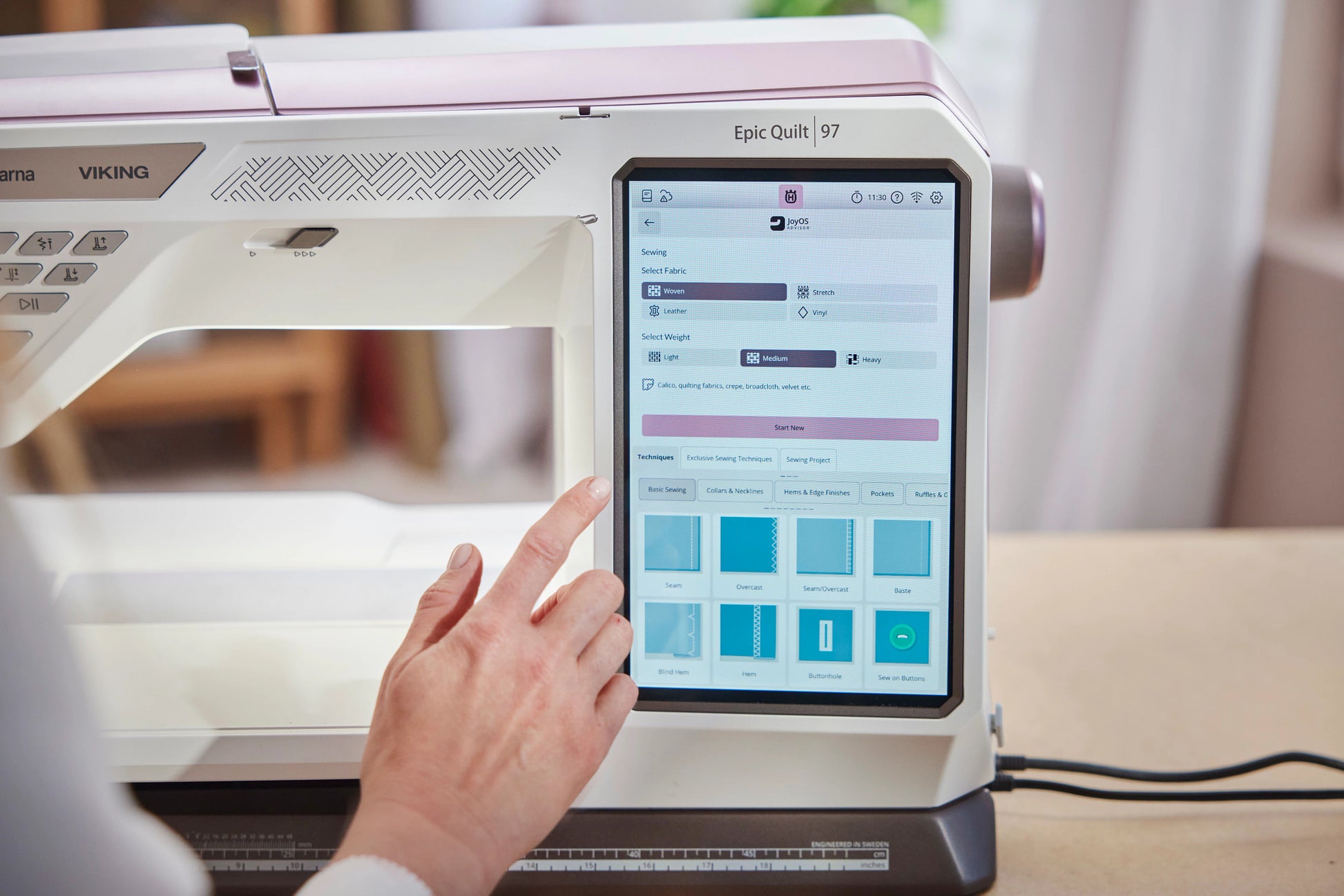 The Epic Quilt™ 97 makes your quilting dreams a reality, with projection to help place and guide stitches, a spacious workspace for king-sized quilts, and a purpose-built accessory kit to enhance your creativity.