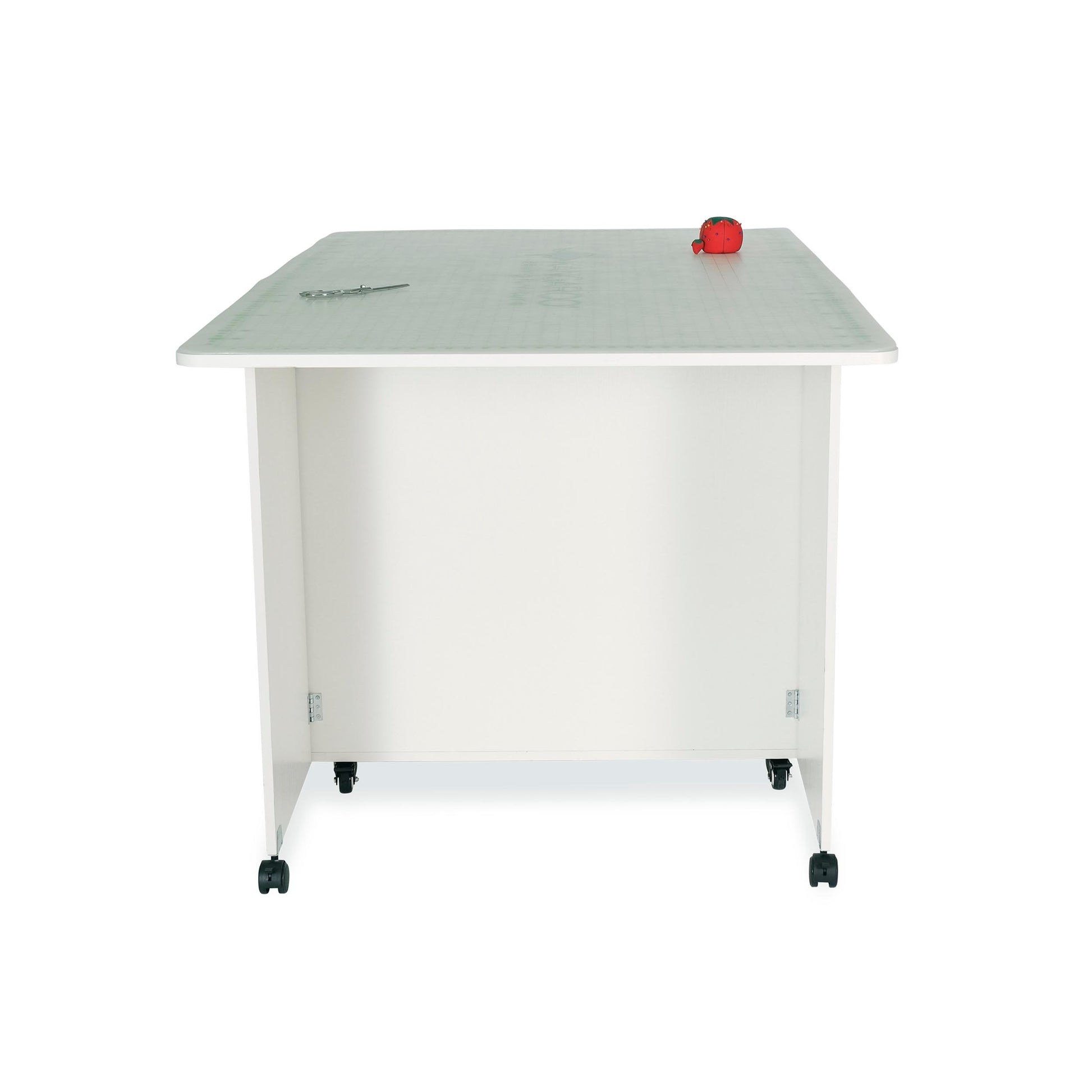 Kangaroo’s premiere cutting table is the perfect addition to your sewing and crafting studio! Kookaburra’s timeless design and elegant fixtures provide storage, convenience, and function – along with an expansive 70″ x 40″ worksurface! Kookaburra sits on 8 heavy-duty casters to provide stability, easy mobility, and 360° access. Even better – Kookaburra’s 2 side leaves fold down to 20″ x 40″ to easily store when not in use! 4 storage drawers on the front, 4 storage shelves on the back, and 1 beautiful cutting table to help elevate your sewing and crafting experience!