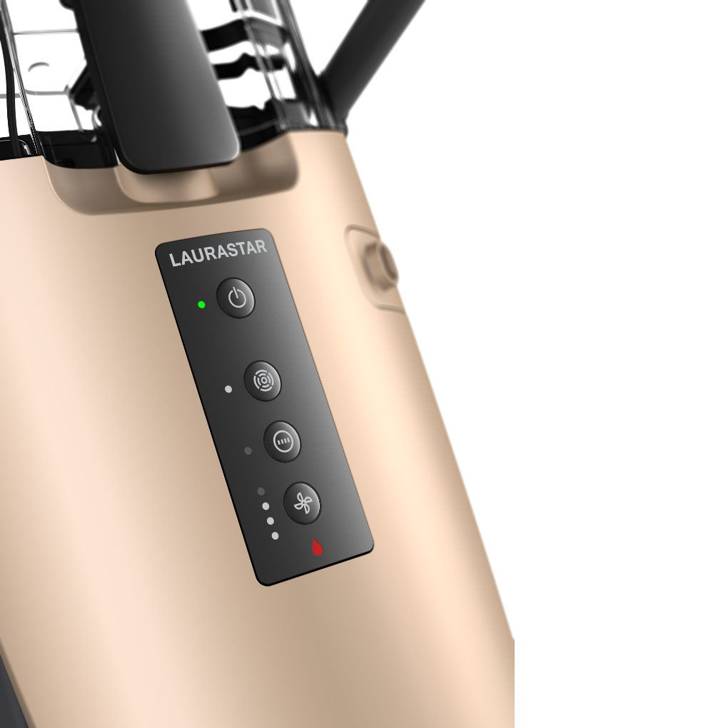 Gently cares for all fabrics and colors with professional iron and Laurastar DMS (Dry Microfine Steam).