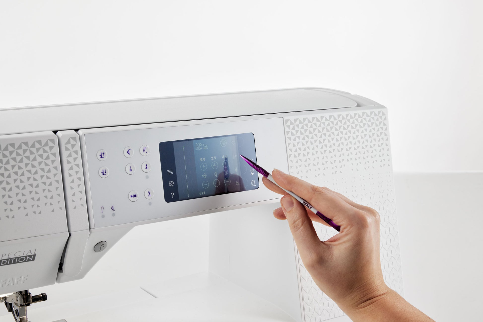 PFAFF® Color Touch Screen — View stitches in real size and access settings on a bright, 3.5" color display.
